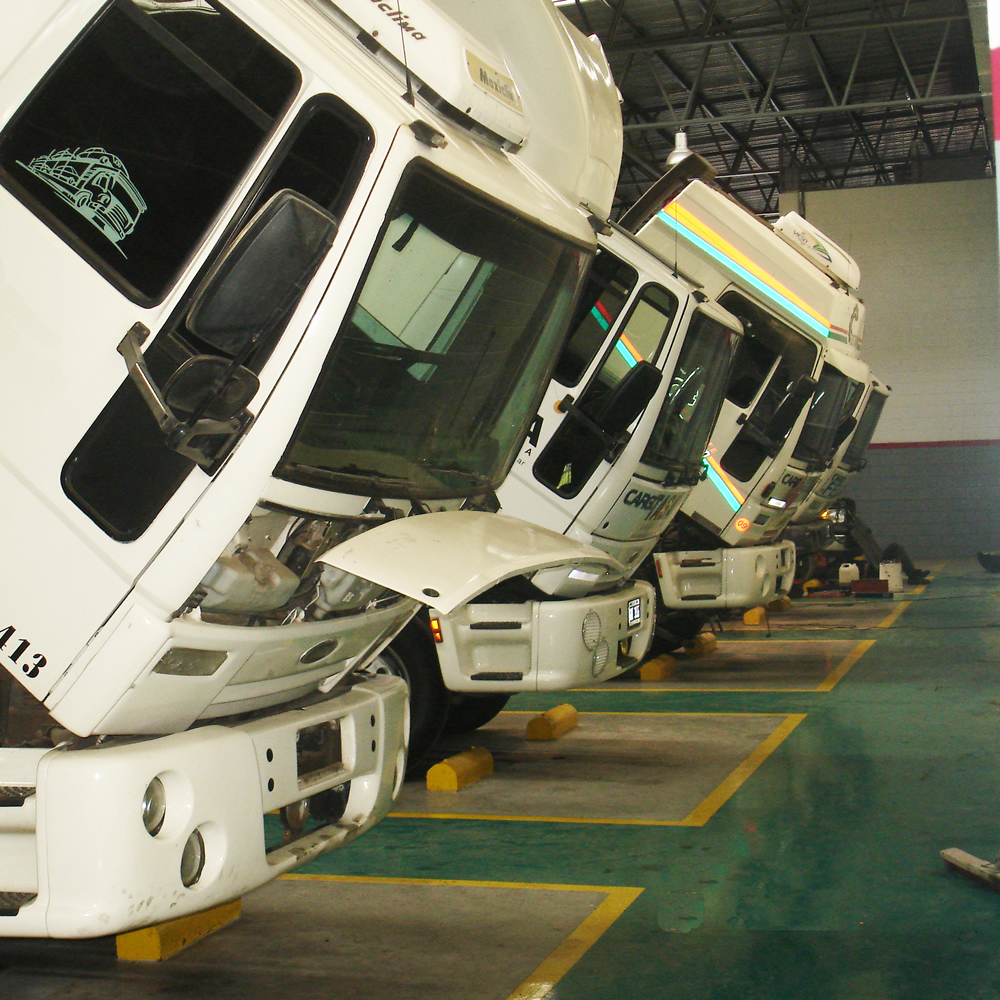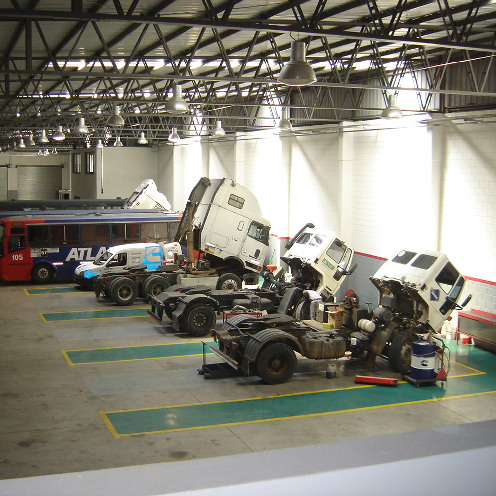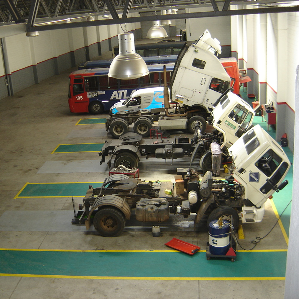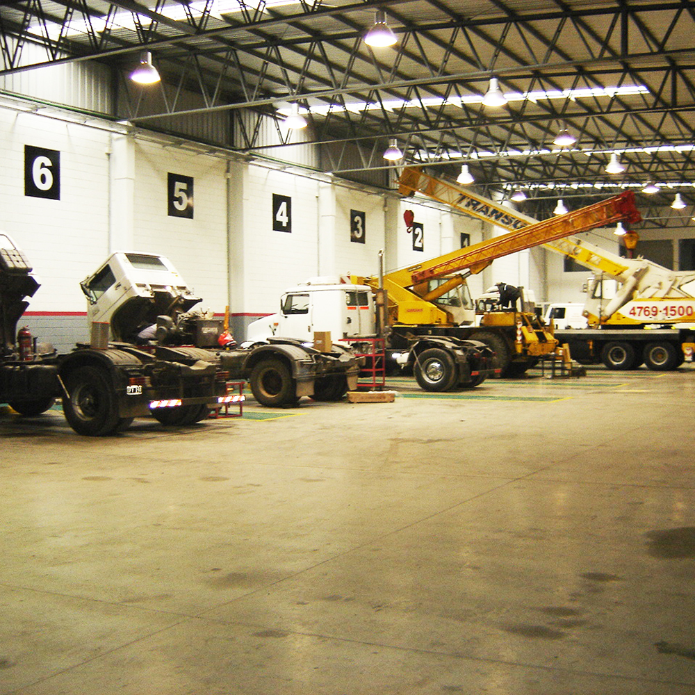 Playa con 12 boxes para vehículos pesados, destinados a trabajos sobre equipos (camiones, grupos generadores, maquinas viales, maquinas agricolas, etc.).